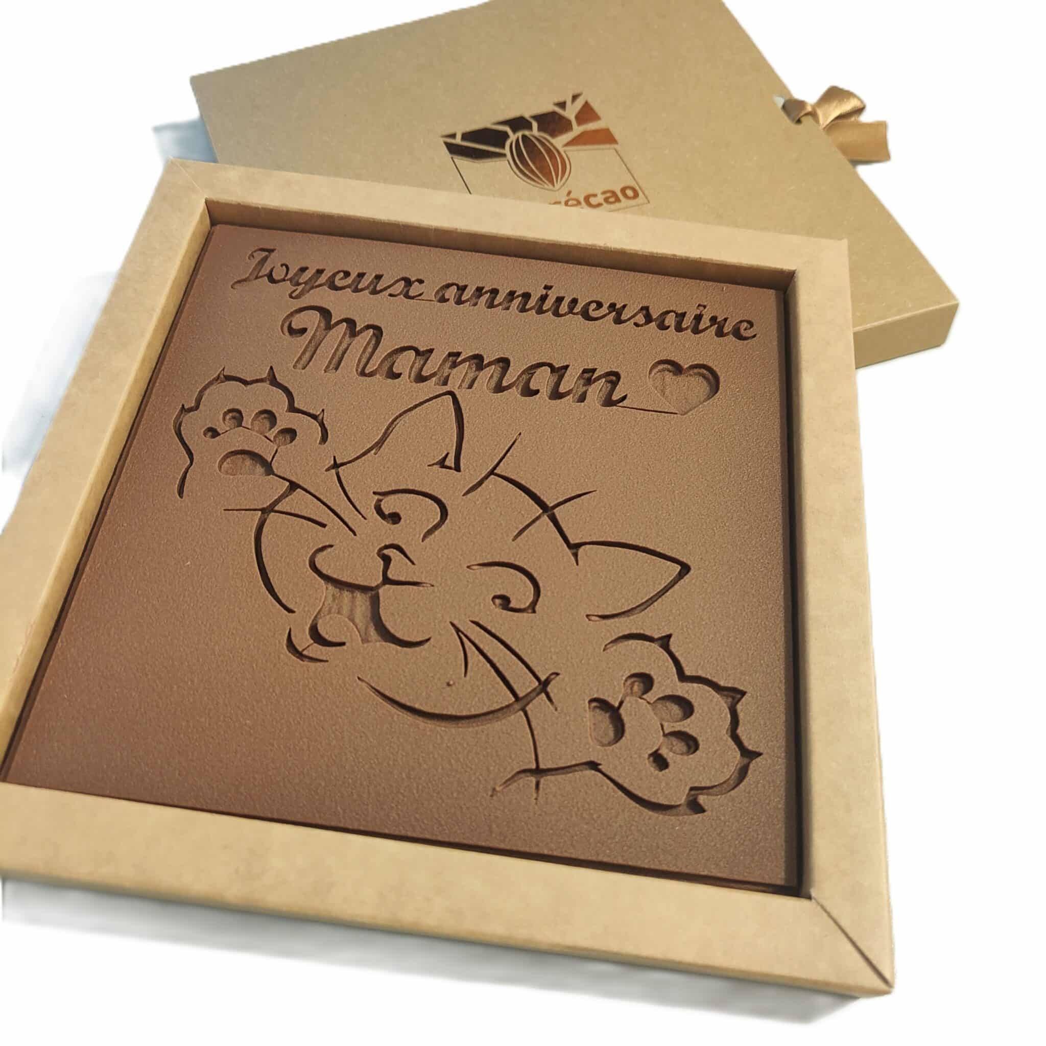 Le chocolat personnalisé est une valeur sûre pour faire plaisir à vos proches. La tablette Chaton, avec son chat gravé et son message personnalisé, fera briller les yeux de celui ou celle qui la recevra. Choisissez parmi nos 3 dimensions : de quelques caractères à plusieurs mots, vous trouverez le format qui vous convient le plus. Sélectionnez ensuite le chocolat préféré de votre ami parmi nos 4 compositions et laissez libre court à votre imagination pour lui écrire quelques mots bien choisis.