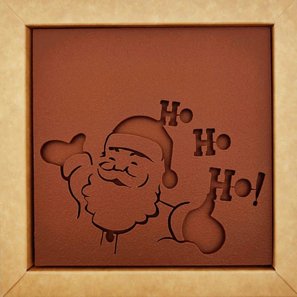 Ornée de son chaleureux Papa Noël, cette tablette plaira aux plus petits comme aux grands gourmands.